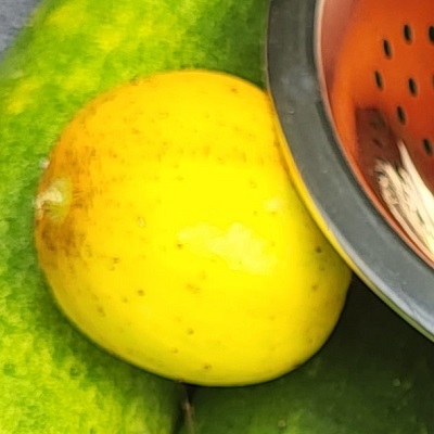 An old variety dating back to 1894. Vigorous and heavy cropping, fruits are round like an apple and lemon in colour. Flesh is white, sweet and purbless